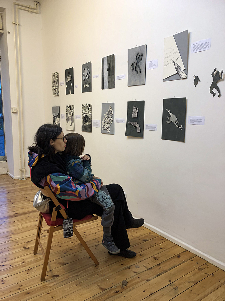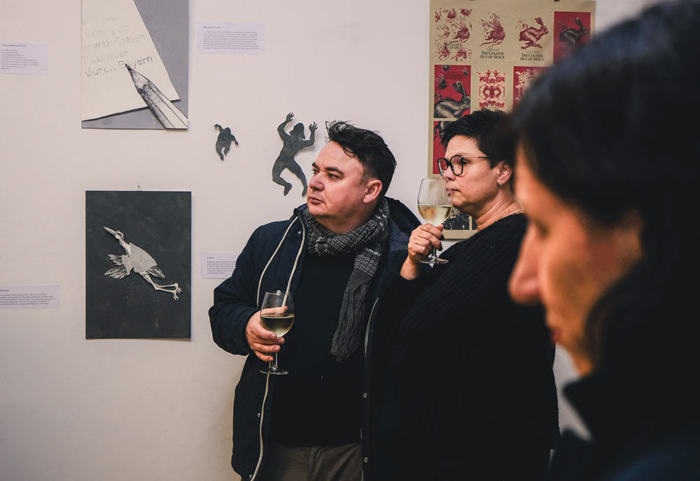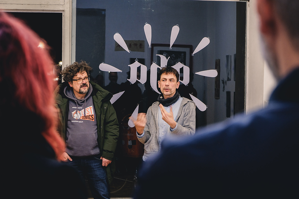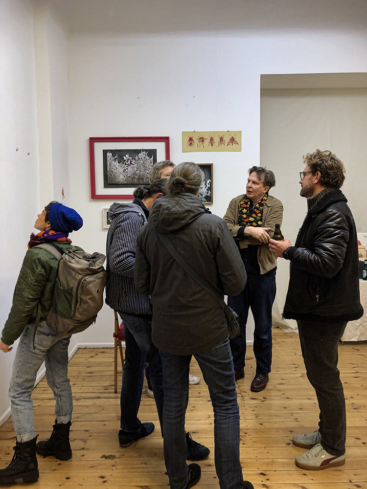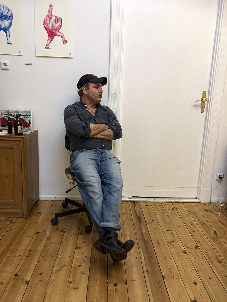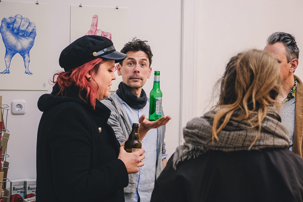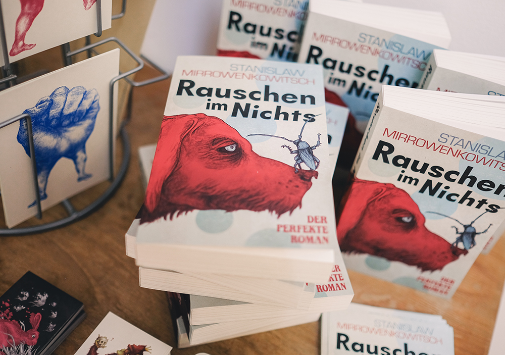 Drei Tage gastierte ich in der Galerie Santa Tosta in Berlin Wedding, um u.a. die sensationellen dreidimensionalen Illustrationsapplikationen zum Welterfolg “Rauschen im Nichts“ des betrunkenen Stanislaw Mirrowenkowitsch zu zeigen. Und (fast) alle sind gekommen. Am Morgen hat dann die AI angerufen und mir zu meinem Sieg gratuliert. Fair! Tut mir leid, für alle die krank waren: Ein Verlängerung ist nicht möglich. Wir sind hier nicht das Internet.