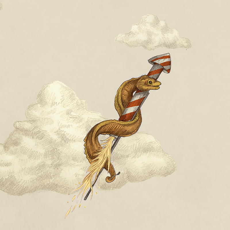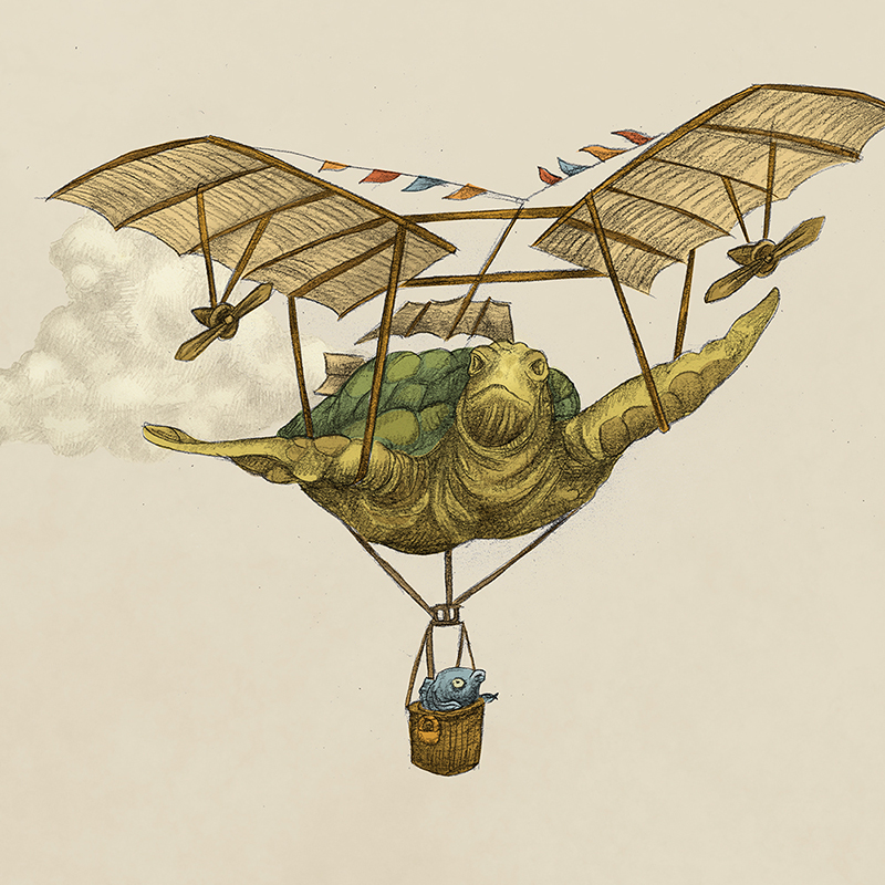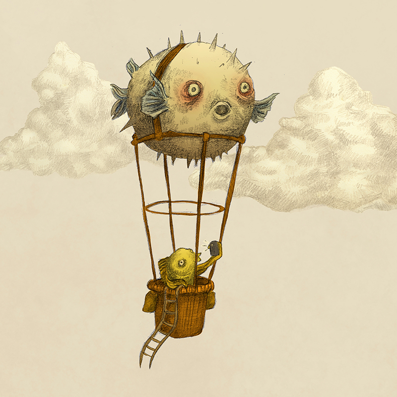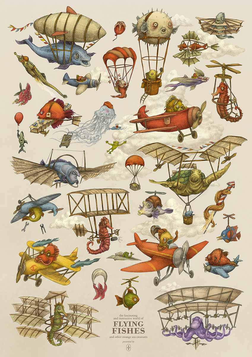 Doch eines Tages sprach der große Leonardo da Vischi: „Das Wasser ist mir nicht genug. Ich will sehen, was über der Oberfläche liegt.“ Als er bald darauf seine erste dreiflossige Propeller-Schubmaschine präsentierte, wurde er noch verlacht. Aber bald siegte die Neugier, und das glitzernde Zeitalter der fliegenden Fische brach an: Sport, Erholung, Abenteuer. Die Schwanzflosse baumeln lassen und das Wasser von oben betrachten.