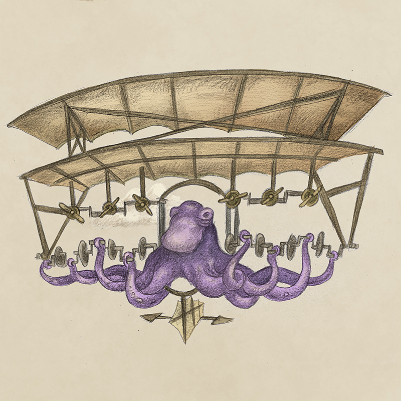 Ihrer Kleingeistigkeit ist es auch zu verdanken, dass es kaum Aufzeichnungen aus dieser Zeit gibt. Die Vögel haben die Erinnerung an diese – für sie so dunkle – Zeit komplett weggepickt. Der Zeichner Andreas Hartung hat die vorliegenden geheimen Informationen von seinem Goldfisch erhalten, in dessen Familie sie von Generation zu Generation weitergegeben wurden. Sein Ur-Ur-Ur-Ur-Großvater soll Kapitän eines Dreifach-Riesenzeppelins gewesen sein, mit dem man eine Bowling-Mannschaft von Pottwalen transportieren konnte. Auf die Darstellung musste aus Platzgründen leider verzichtet werden.